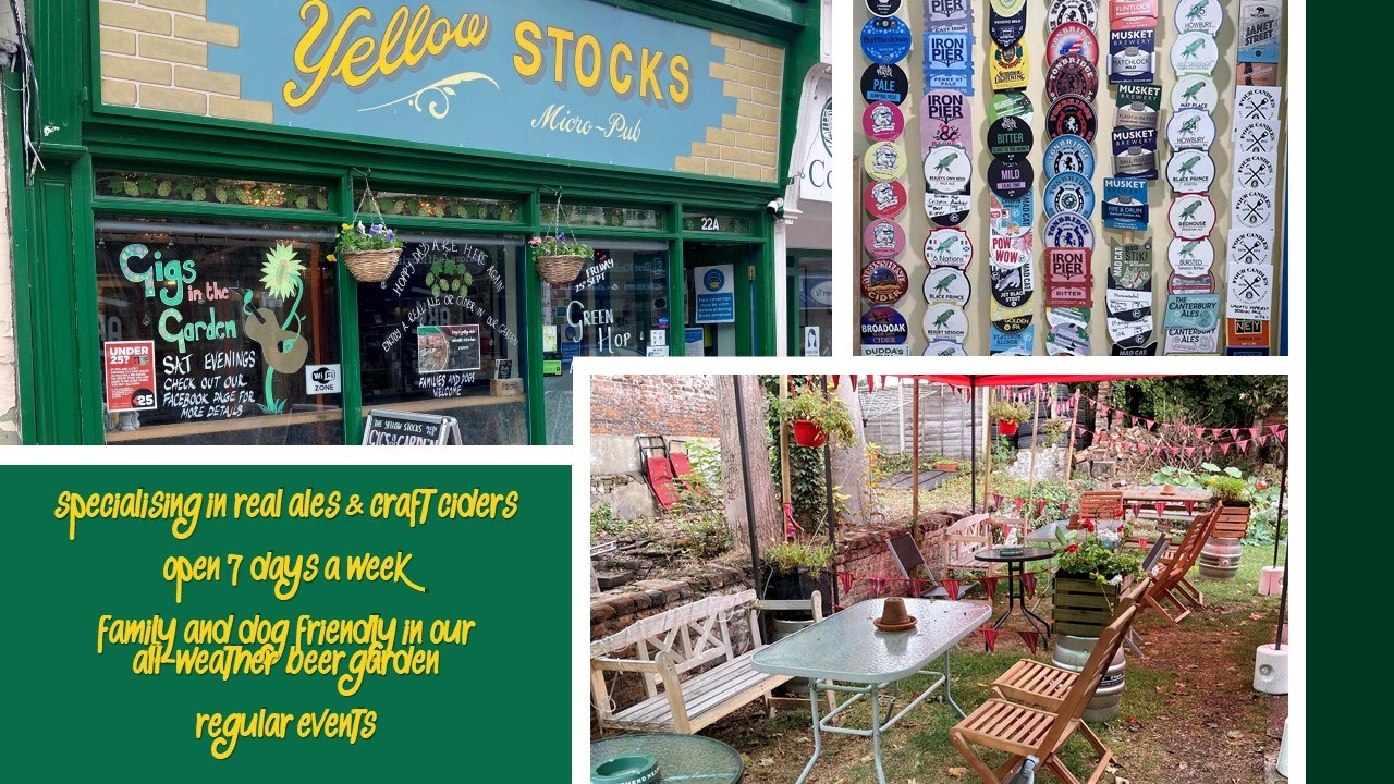 The Yellow Stocks is Sittingbourne’s newest micro pub, the first on the High Street. Serving straight from cask, we have a great selection of Kent real ales and locally produced craft ciders. We also serve carefully chosen wines, spirits and soft drinks.